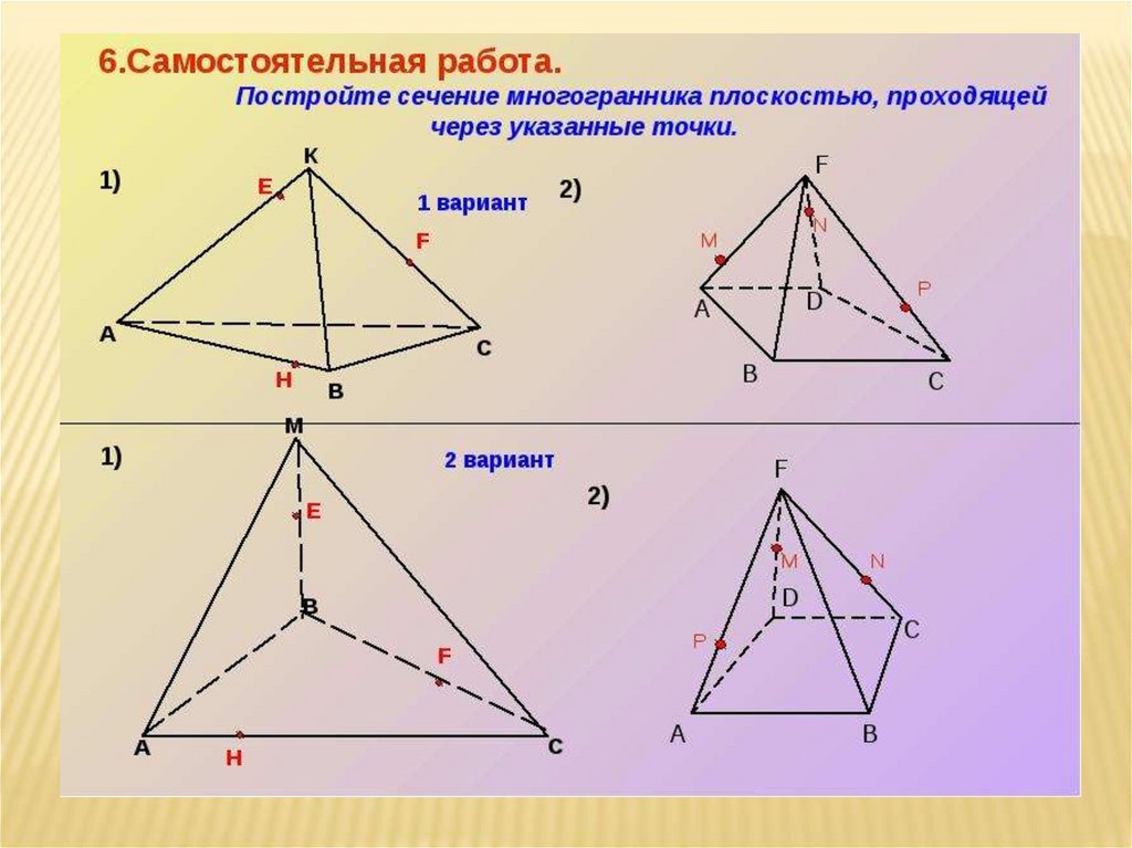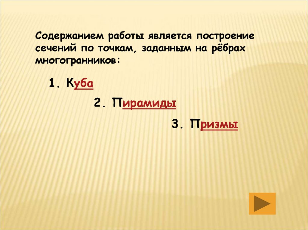 Содержанием работы является построениесечений по точкам, заданным на рёбрах