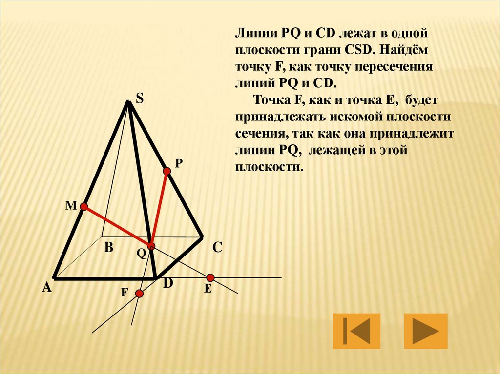 Линии PQ и CD лежат в однойплоскости грани CSD. Найдём