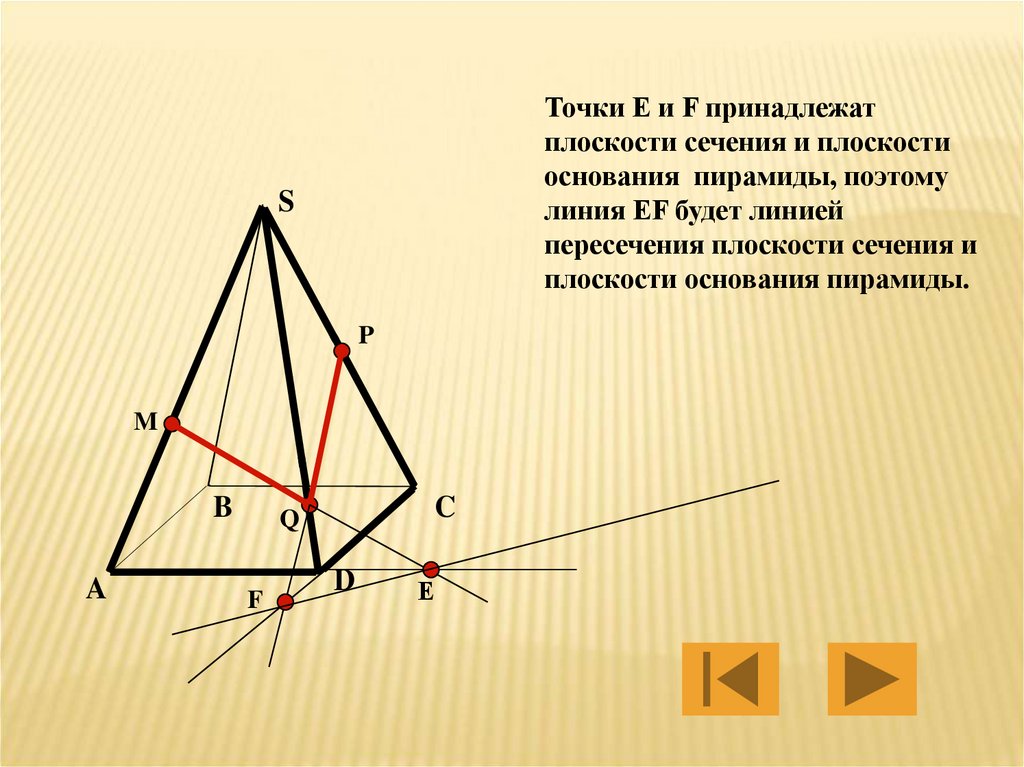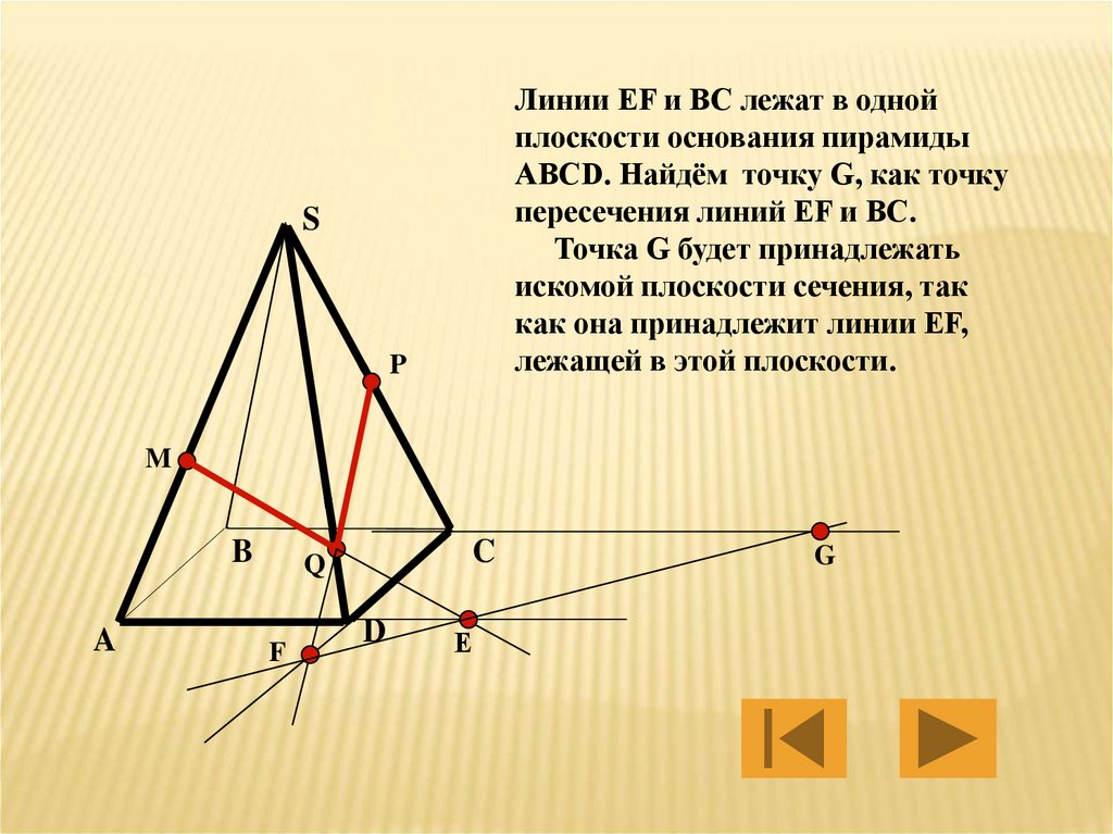 Линии EF и BC лежат в однойплоскости основания пирамиды