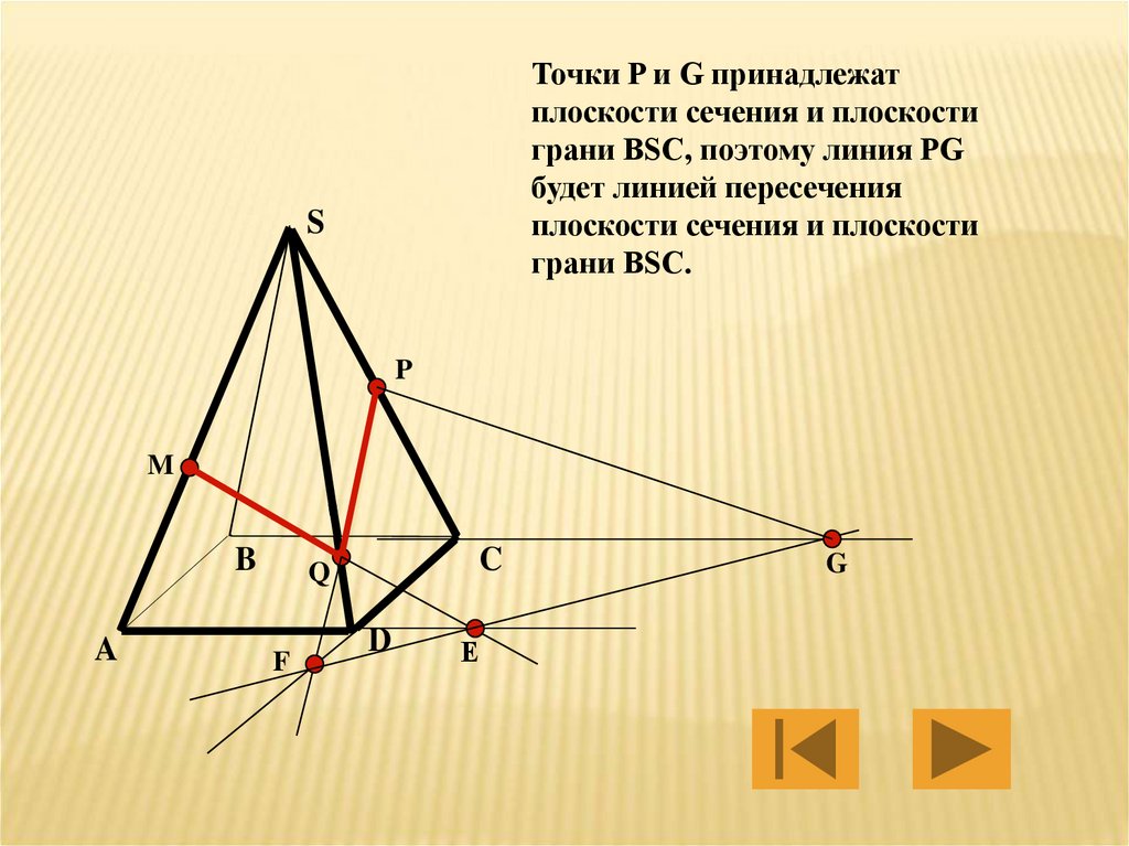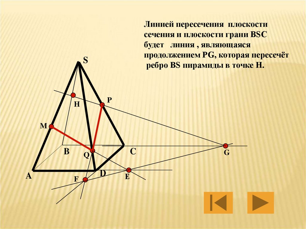 Линией пересечения плоскостисечения и плоскости грани BSC