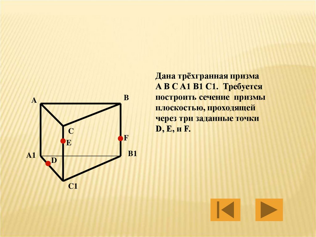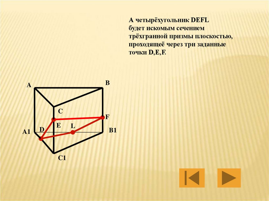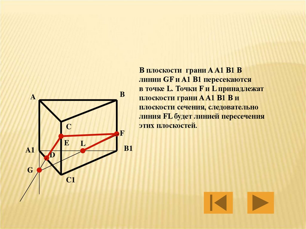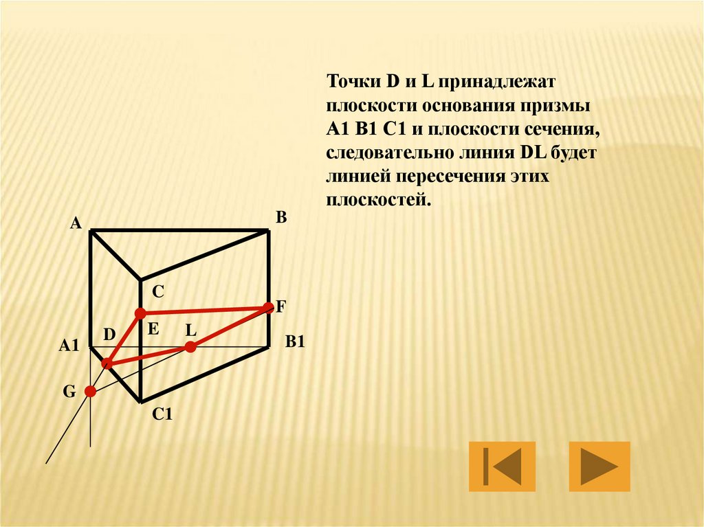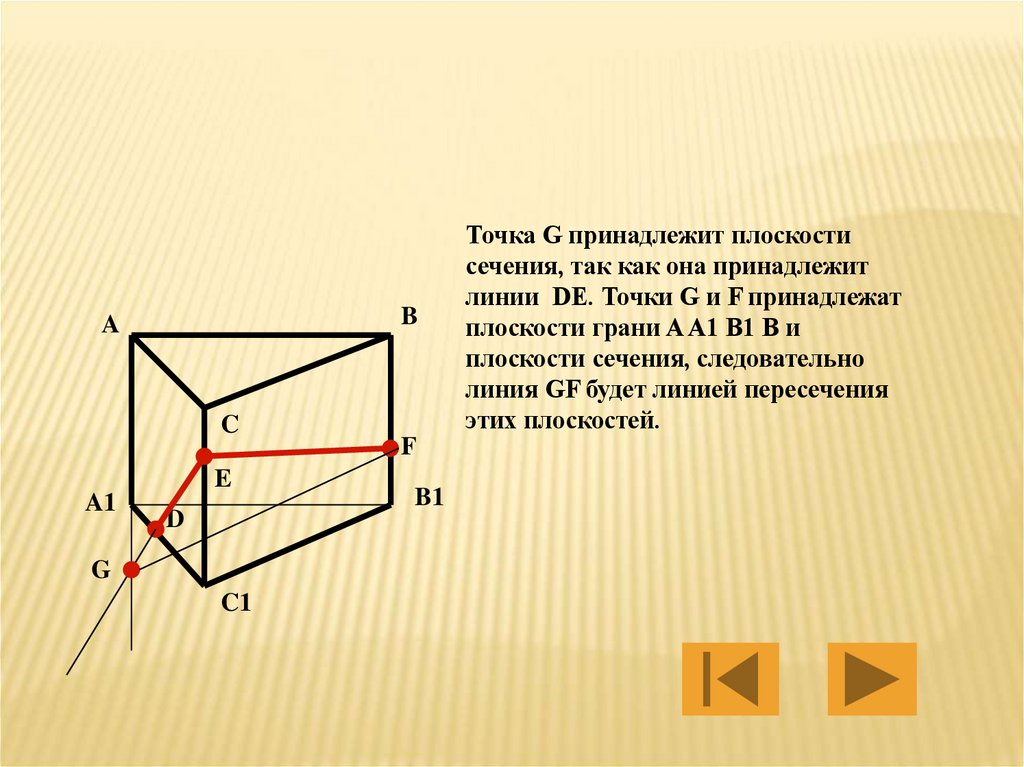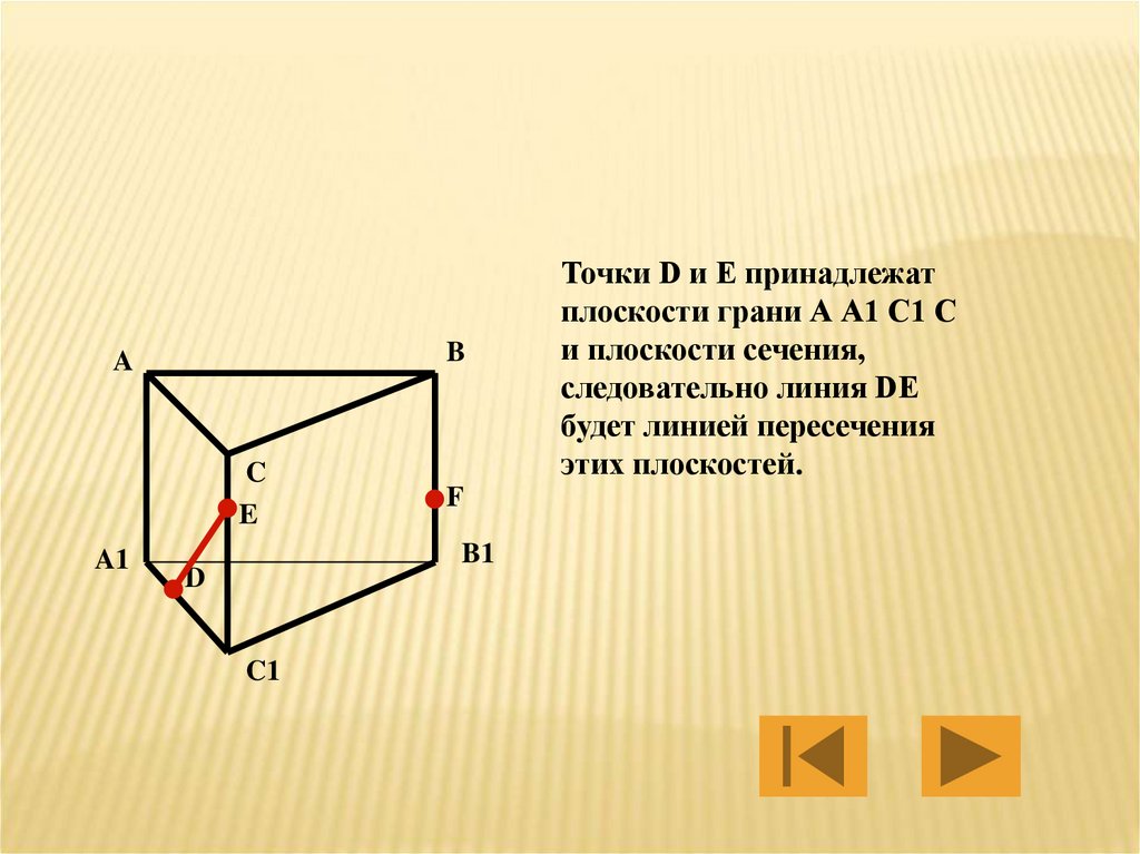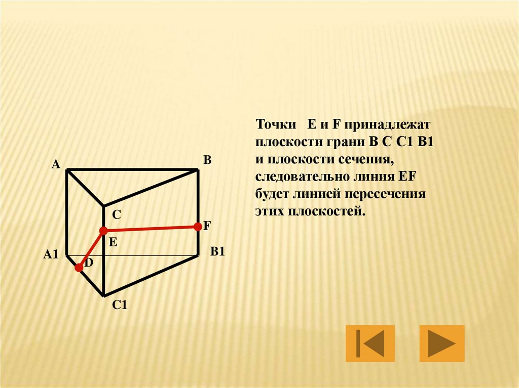 Точки Е и F принадлежатплоскости сечения и плоскости