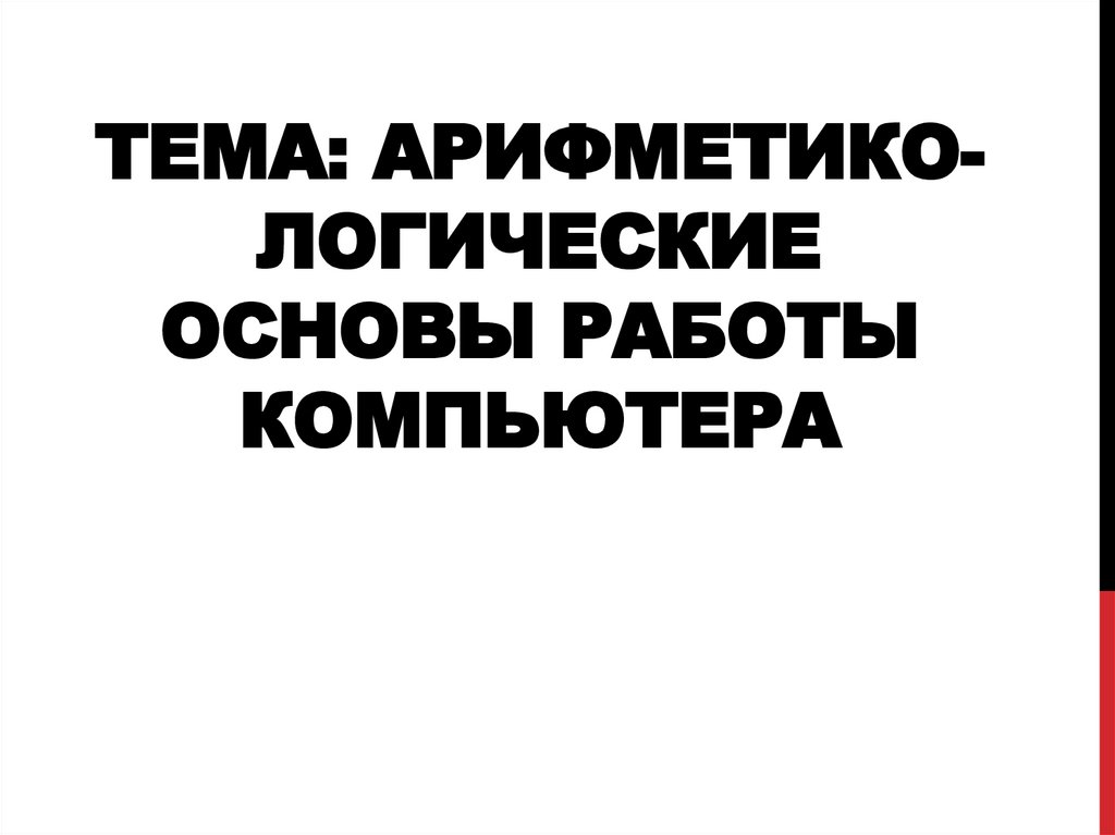 1. Тема: арифметико-Логические основы работы компьютера