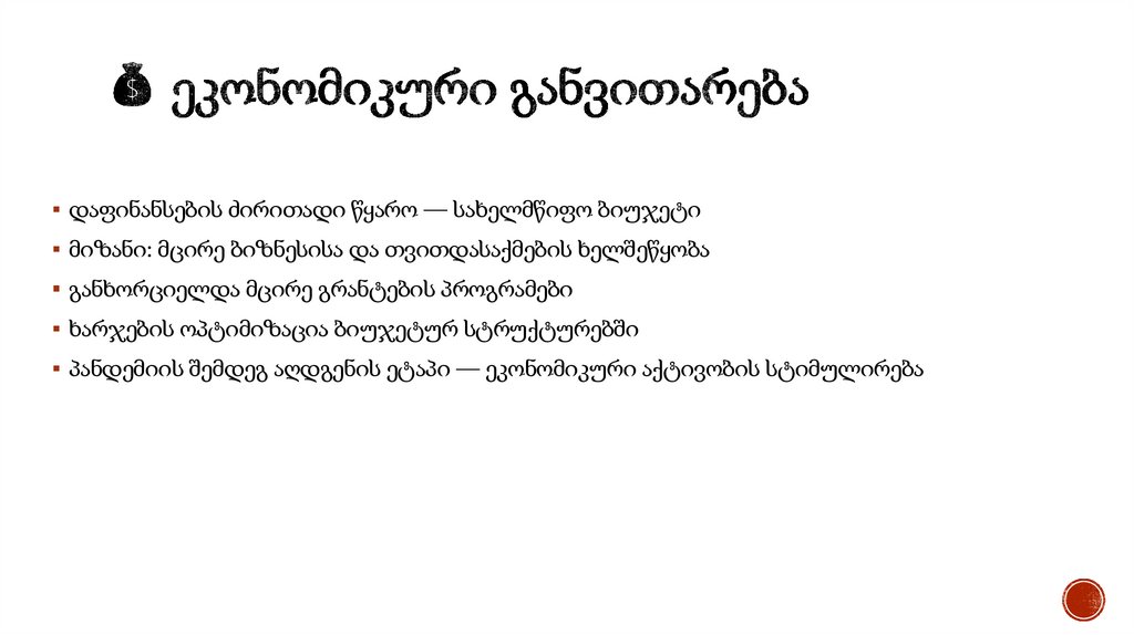პანდემიის შემდეგ აღდგენის ეტაპი — ეკონომიკური აქტივობის სტიმულირება