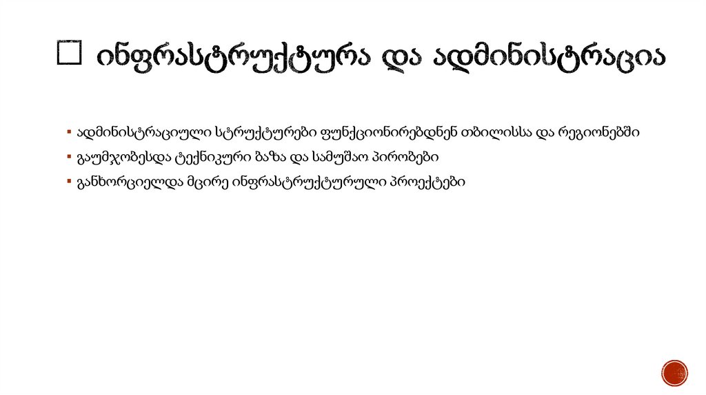 ადმინისტრაციული სტრუქტურები ფუნქციონირებდნენ თბილისსა და რეგიონებშიგაუმჯობესდა ტექნიკური ბაზა და სამუშაო პირობები