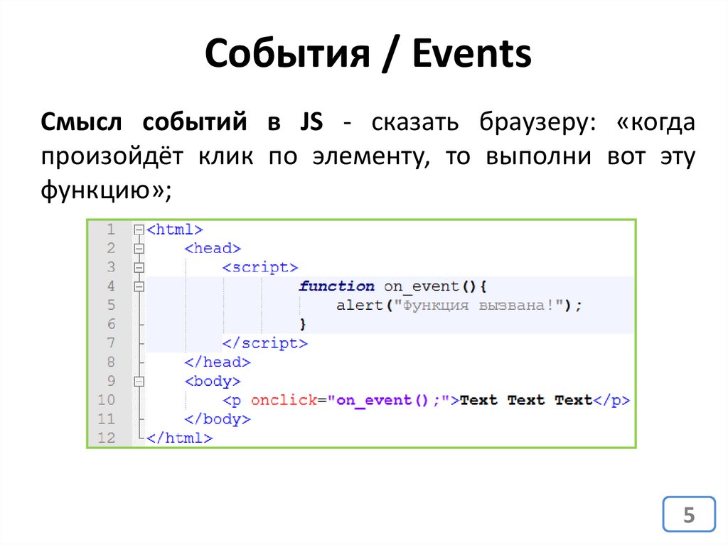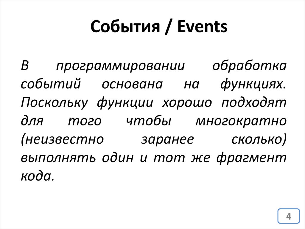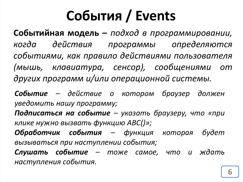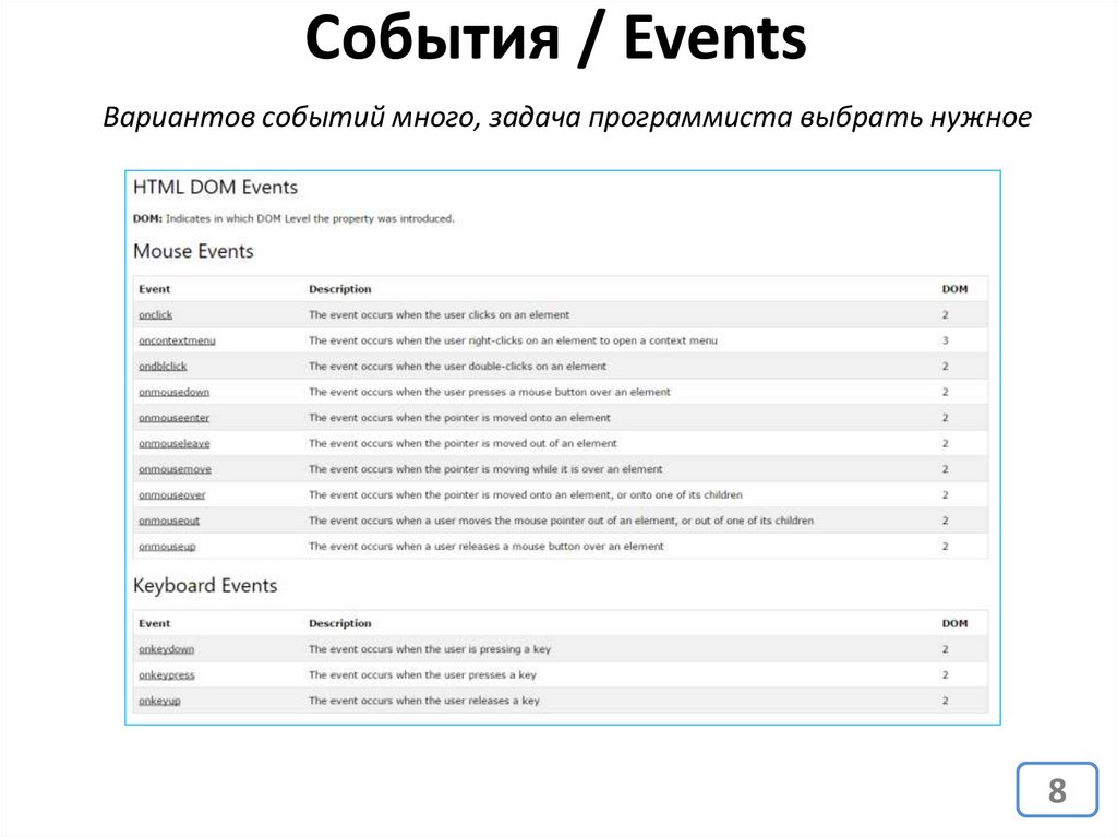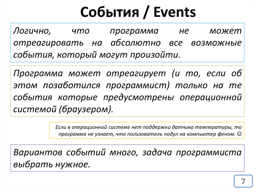 События / EventsВариантов событий много, задача программиста выбрать нужное