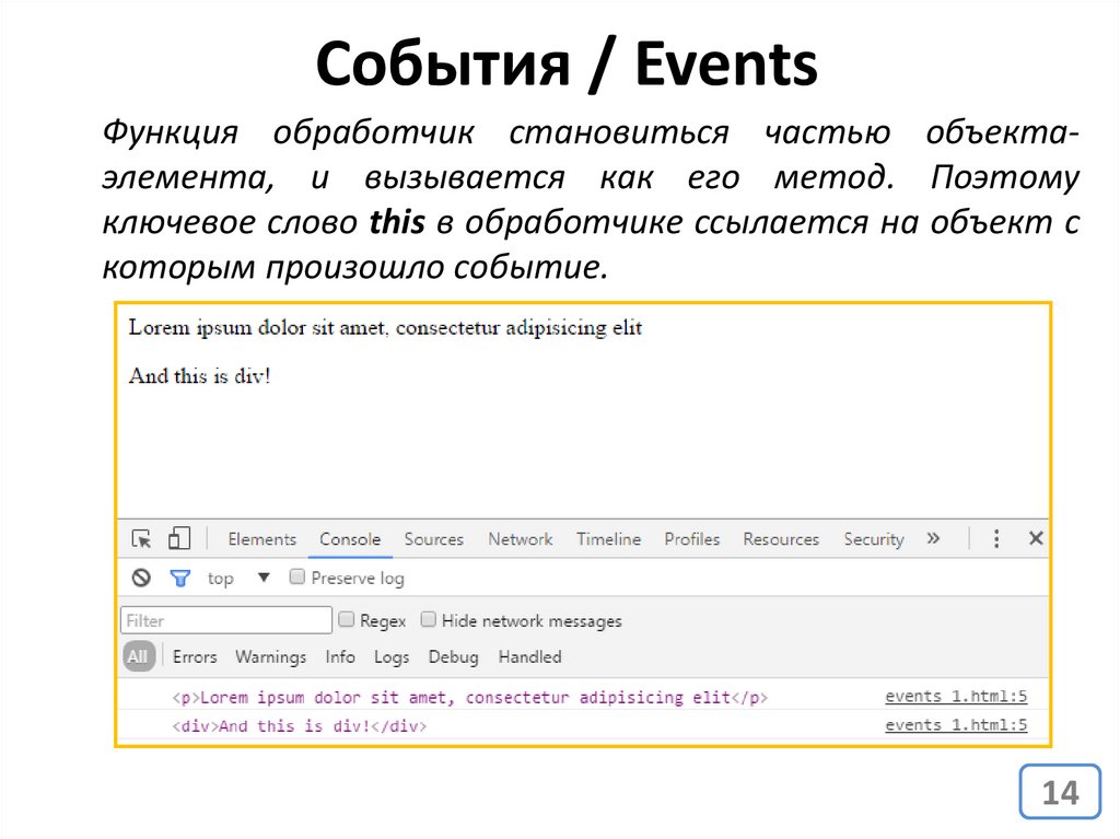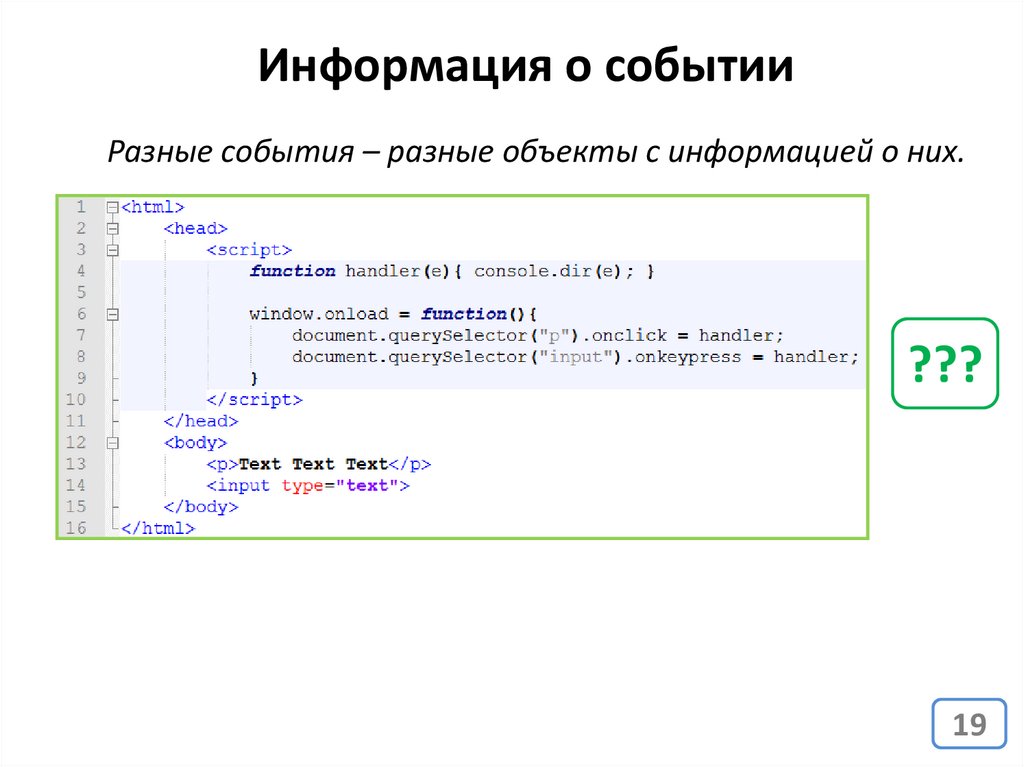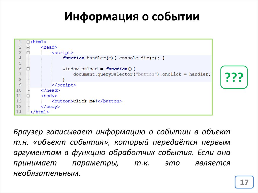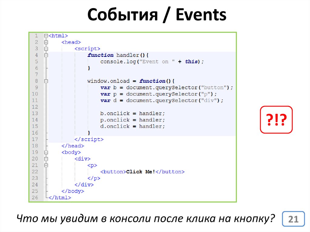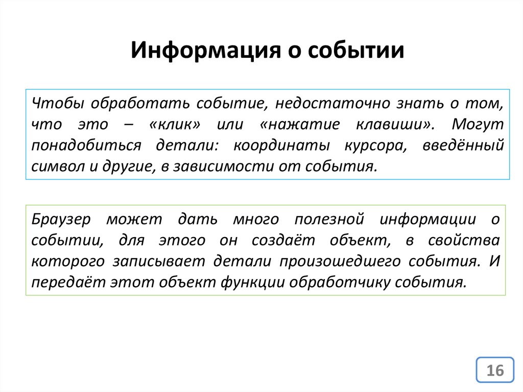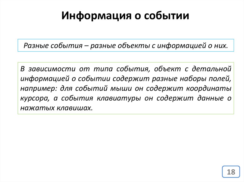 События / EventsВариантов событий много, задача программиста выбрать нужное