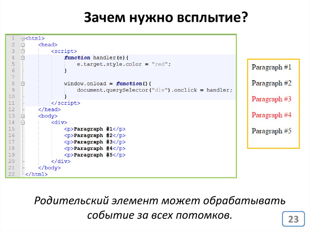 Зачем нужно всплытие?Родительский элемент может обрабатывать