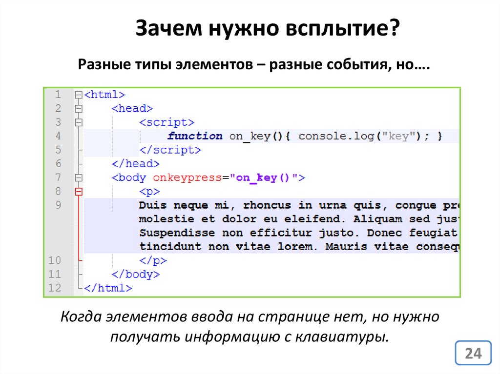 Зачем нужно всплытие?Разные типы элементов – разные события, но….