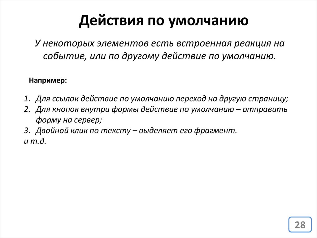 Действия по умолчаниюУ некоторых элементов есть встроенная реакция на