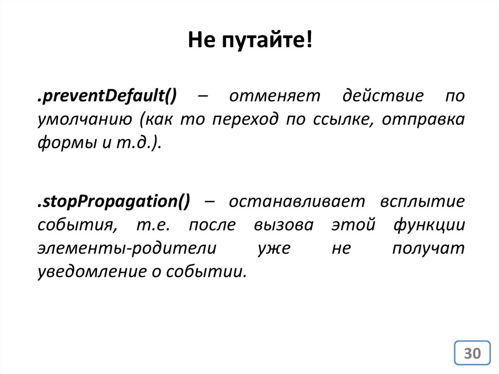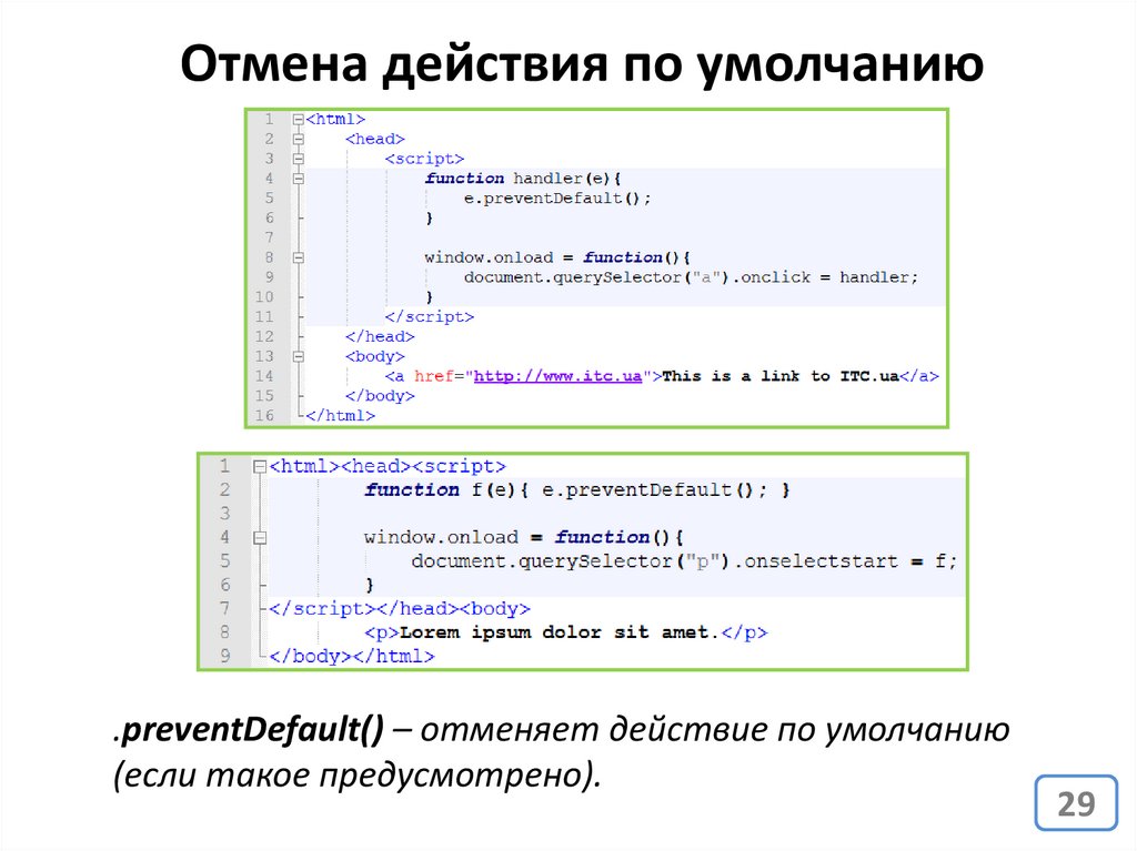 Отмена действия по умолчанию.preventDefault() – отменяет действие по умолчанию