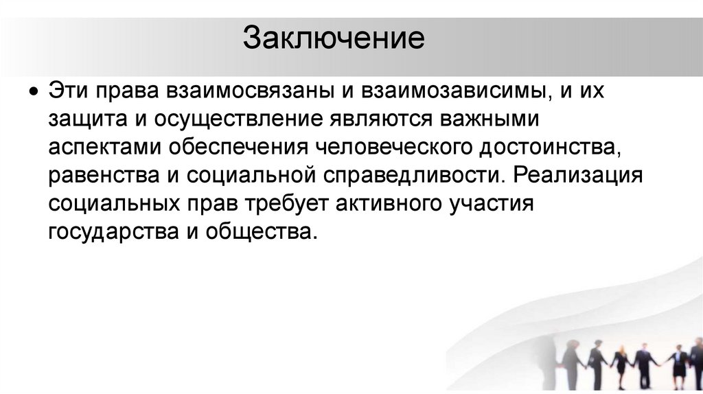 ЗаключениеЭти права взаимосвязаны и взаимозависимы, и их