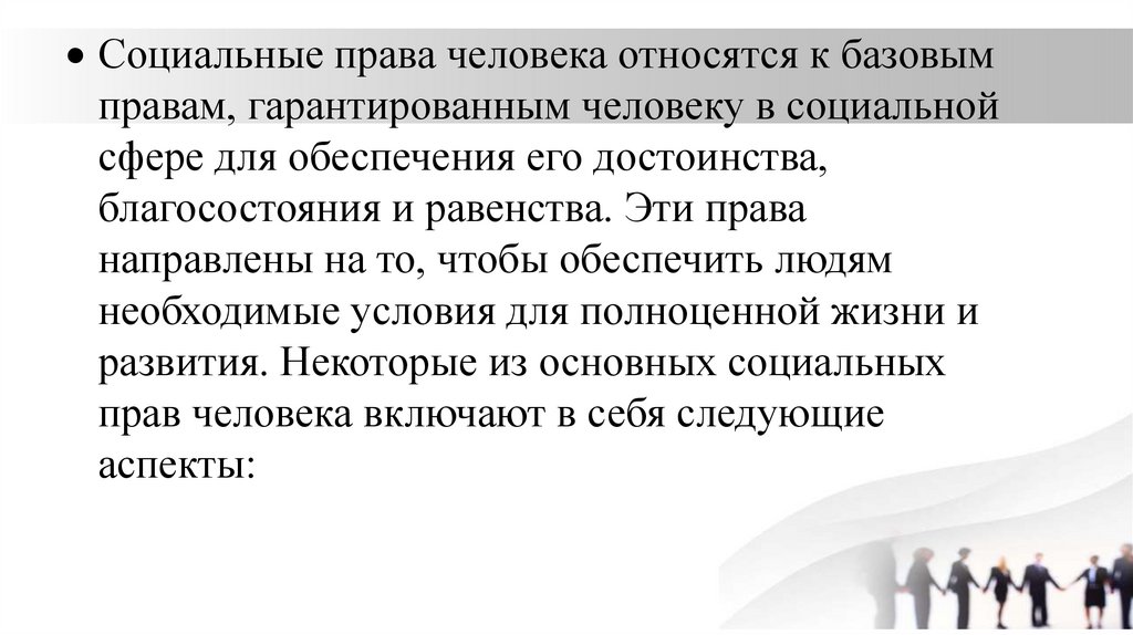 Социальные права человека относятся к базовымправам, гарантированным человеку в социальной