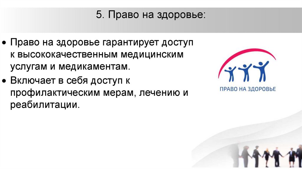 5. Право на здоровье:Право на здоровье гарантирует доступ
