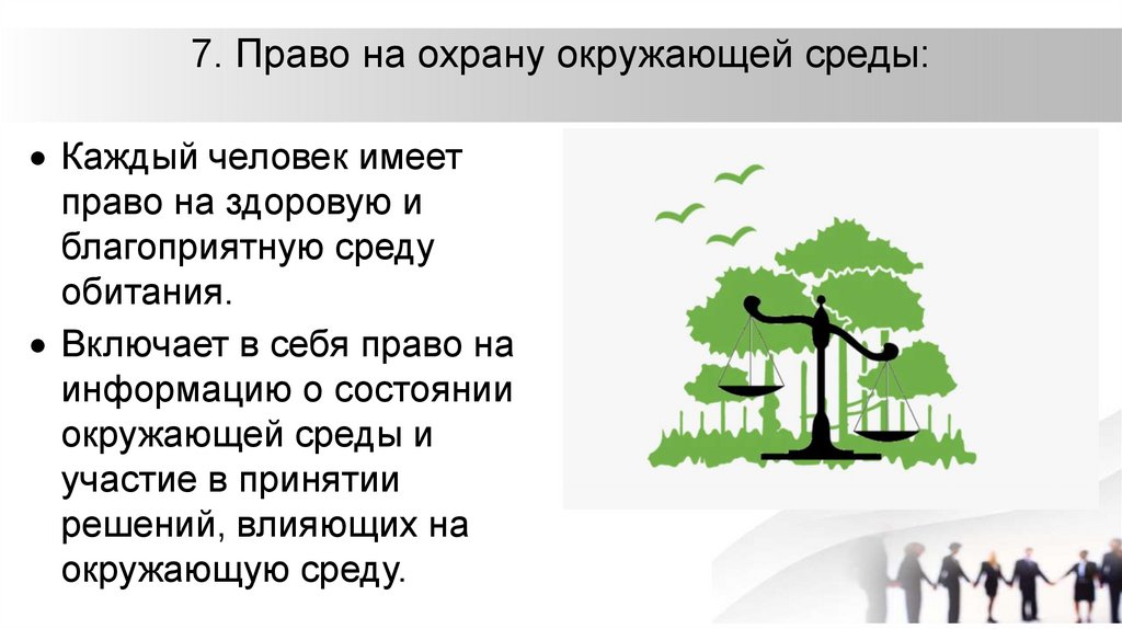 7. Право на охрану окружающей среды:Каждый человек имеет