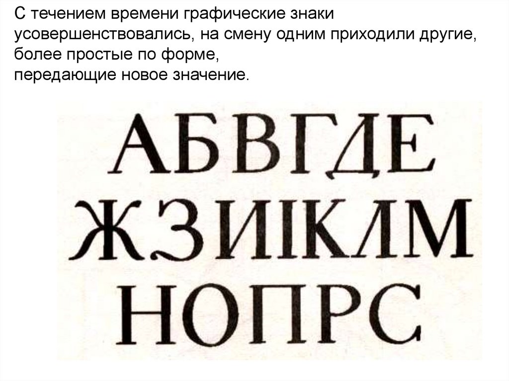 С течением времени графические знакиусовершенствовались, на смену одним приходили другие,