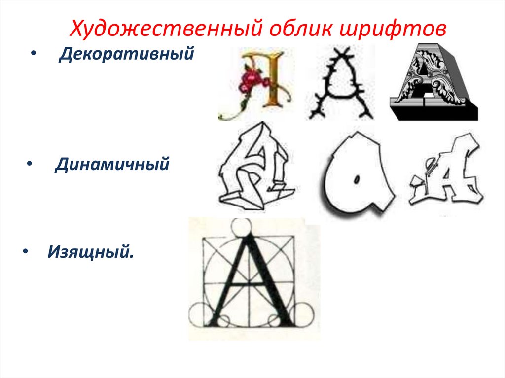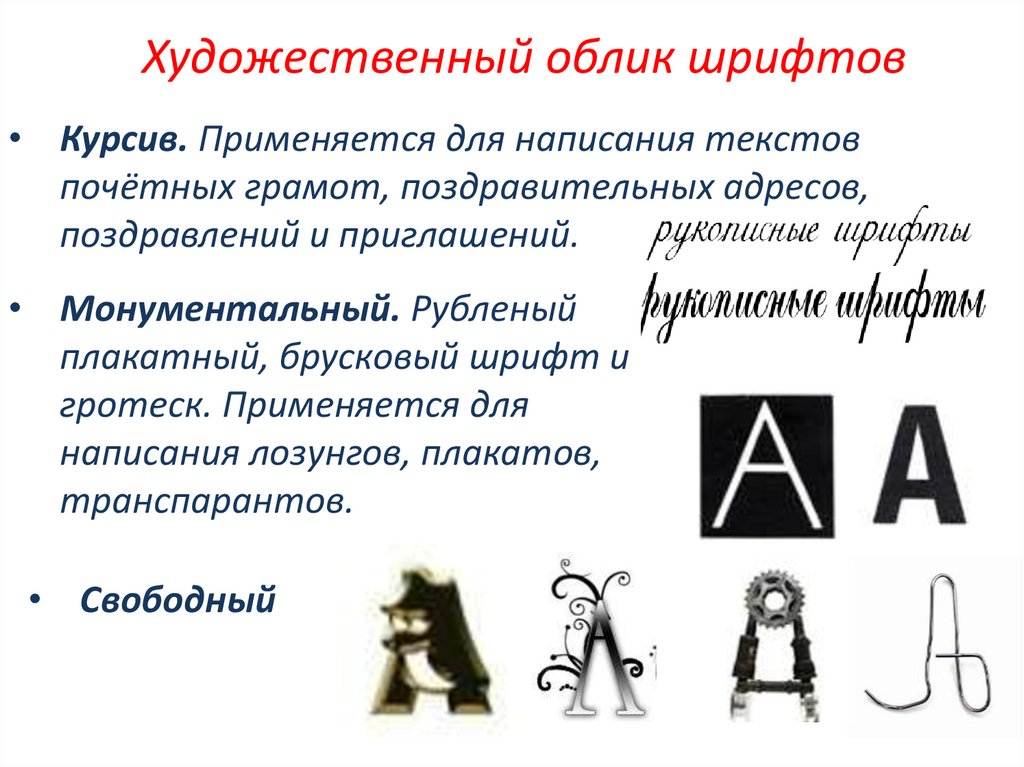 Художественный облик шрифтов• Курсив. Применяется для написания текстов