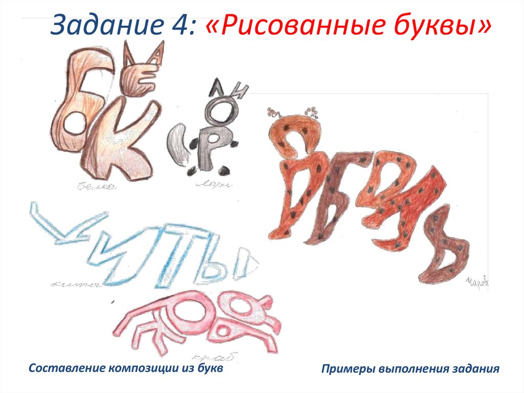 Задание 4: «Рисованные буквы»Составление композиции из букв