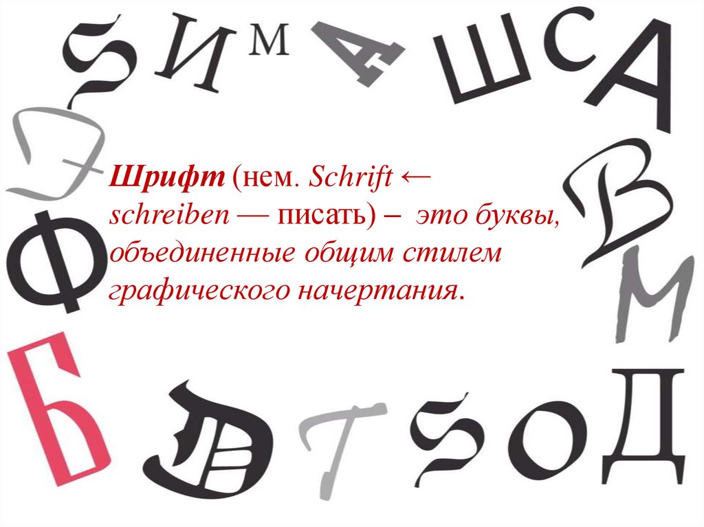 Шрифт (нем. Schrift ←schreiben — писать) – это буквы,