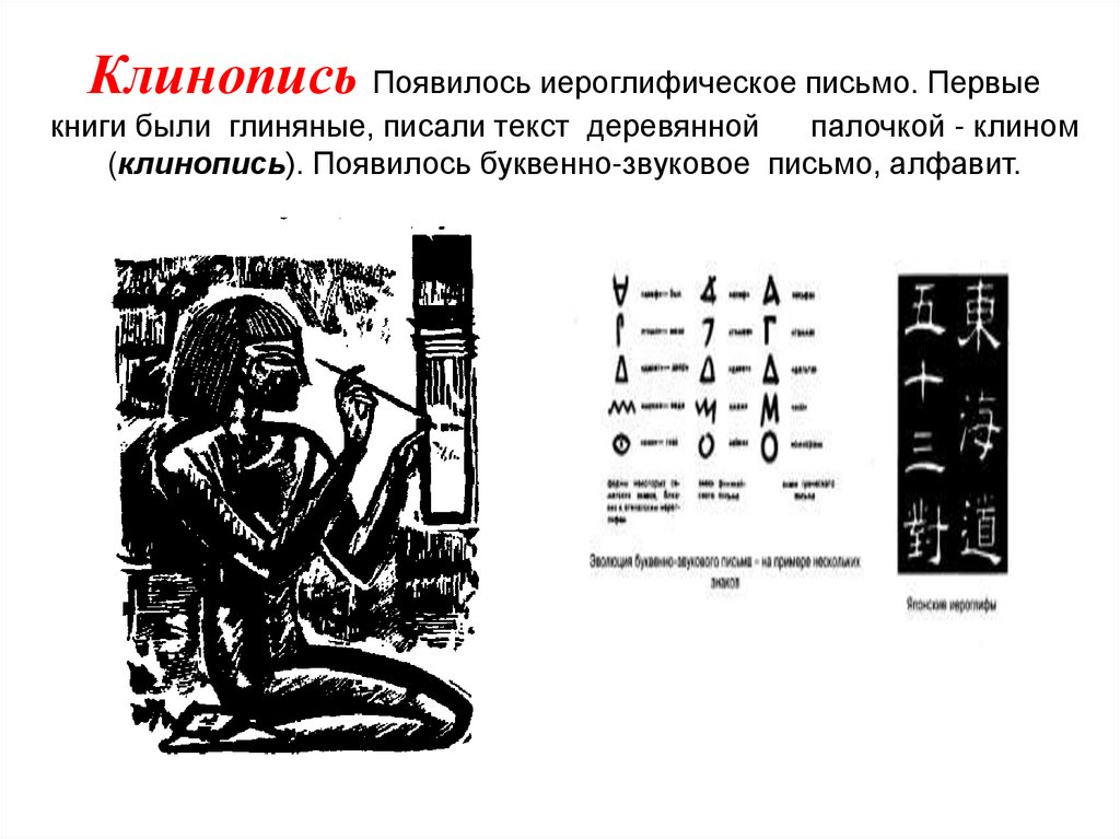 (клинопись). Появилось буквенно-звуковое письмо, алфавит.