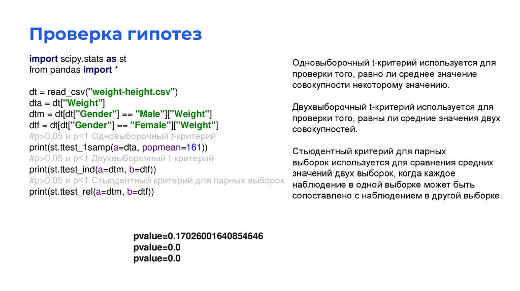 #p>0.05 и p<1 Двухвыборочный t-критерий