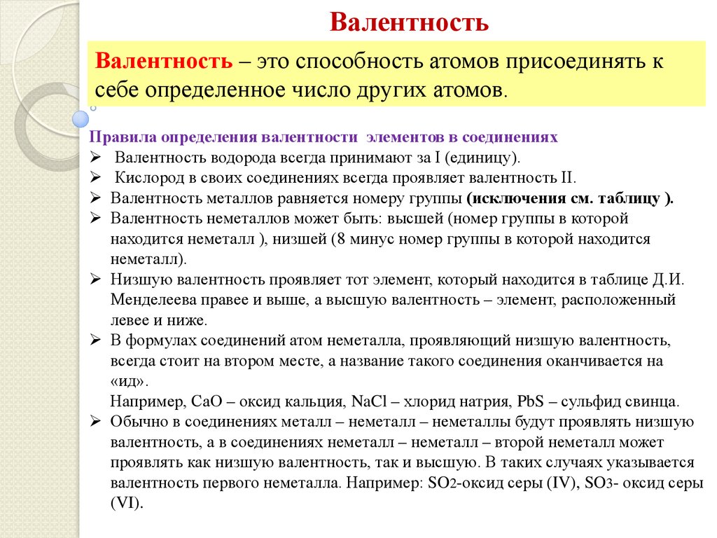 валентность, а в соединениях неметалл – неметалл – второй неметалл может