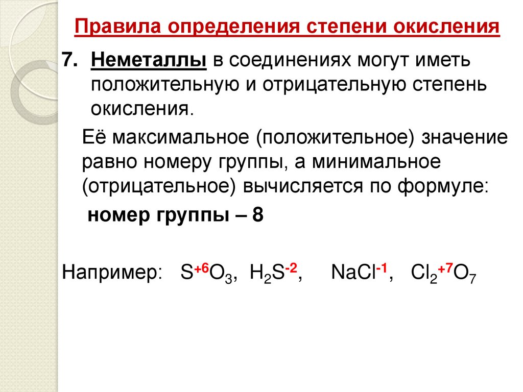 Правила определения степени окисления7. Неметаллы в соединениях могут иметь