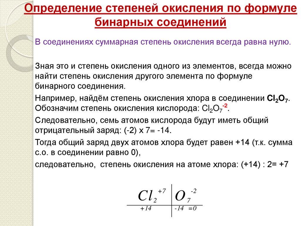 Например, найдём степень окисления хлора в соединении Cl2O7.