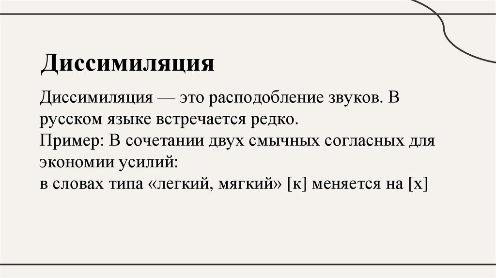 ДиссимиляцияДиссимиляция — это расподобление звуков. В