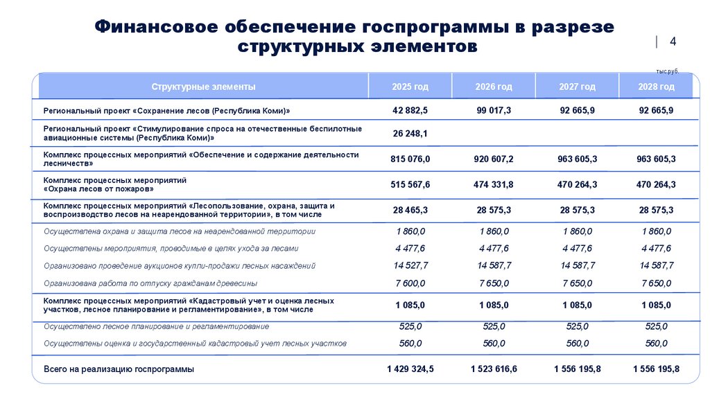 Финансовое обеспечение госпрограммы в разрезеструктурных элементов
