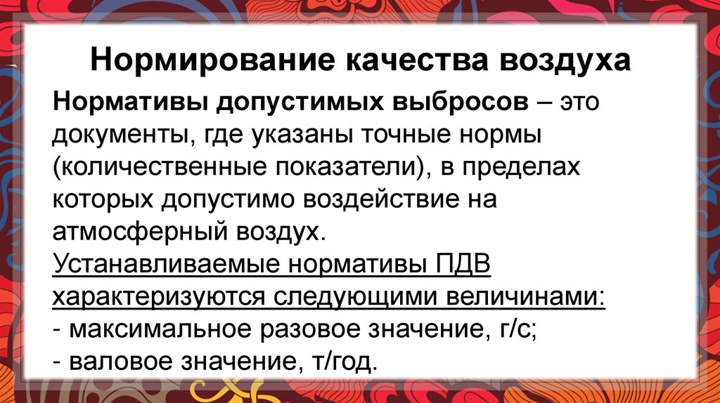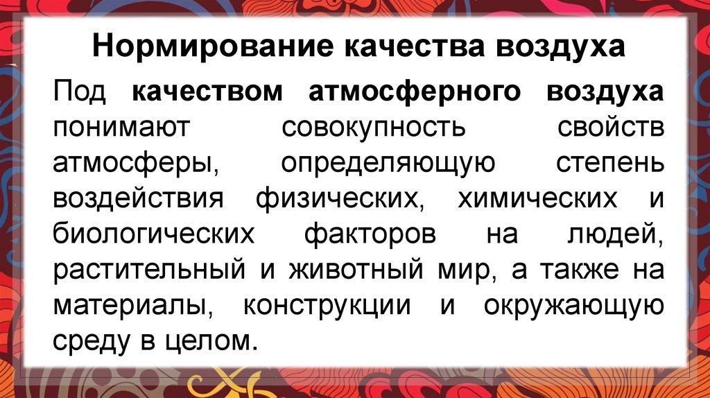 НОРМИРОВАНИЕ КАЧЕСТВА ВОЗДУХА