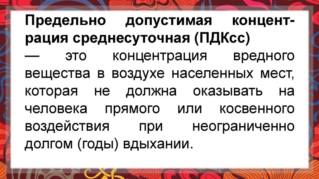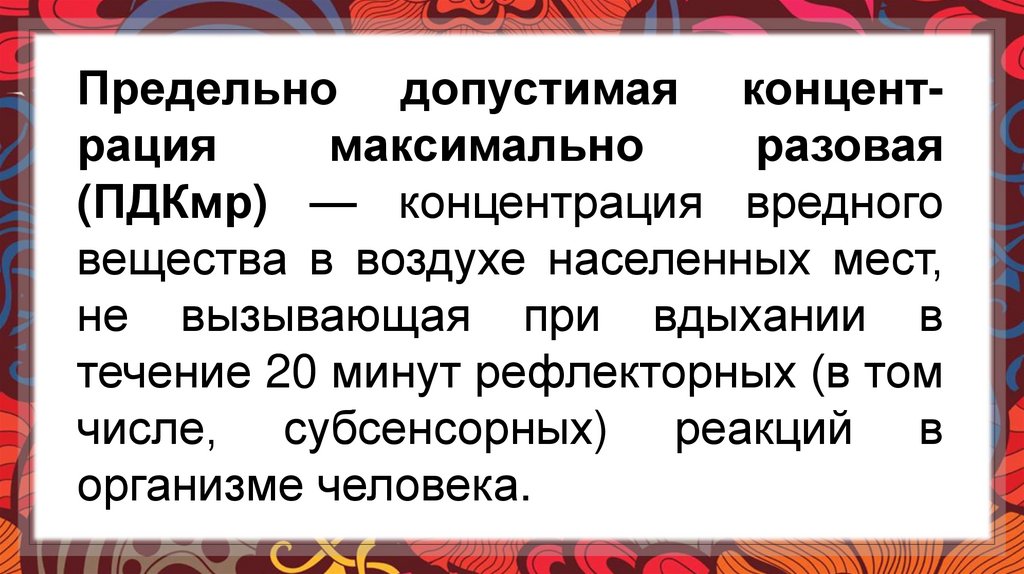 ПДК в воздухе населенных мест.