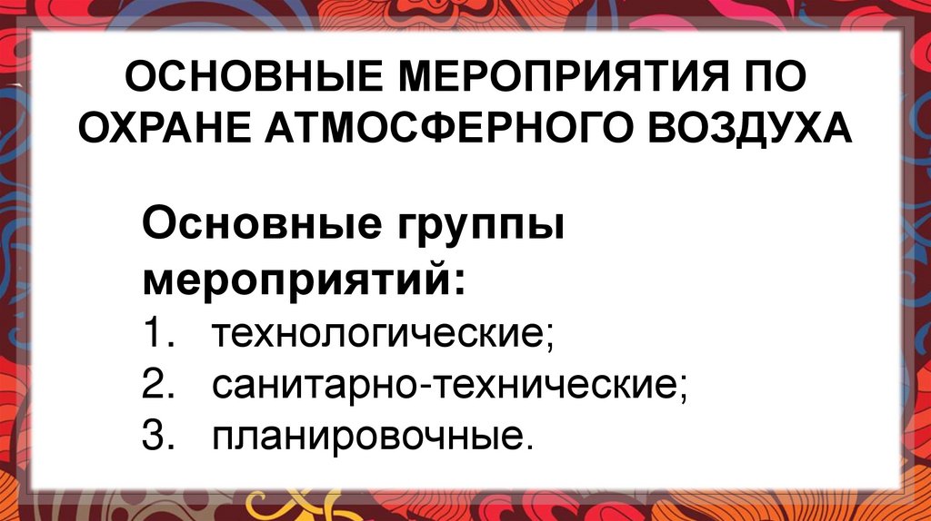 ОСНОВНЫЕ МЕРОПРИЯТИЯ ПООХРАНЕ АТМОСФЕРНОГО ВОЗДУХА