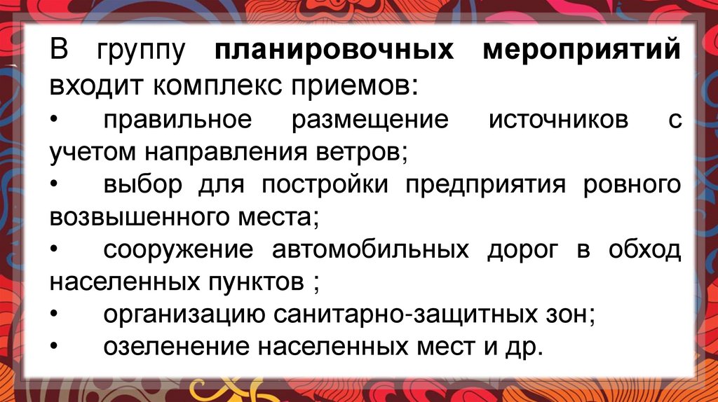 В группу планировочных мероприятийвходит комплекс приемов: