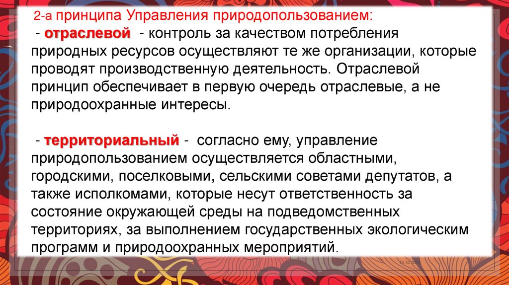 2-а принципа Управления природопользованием:- отраслевой - контроль за качеством потребления