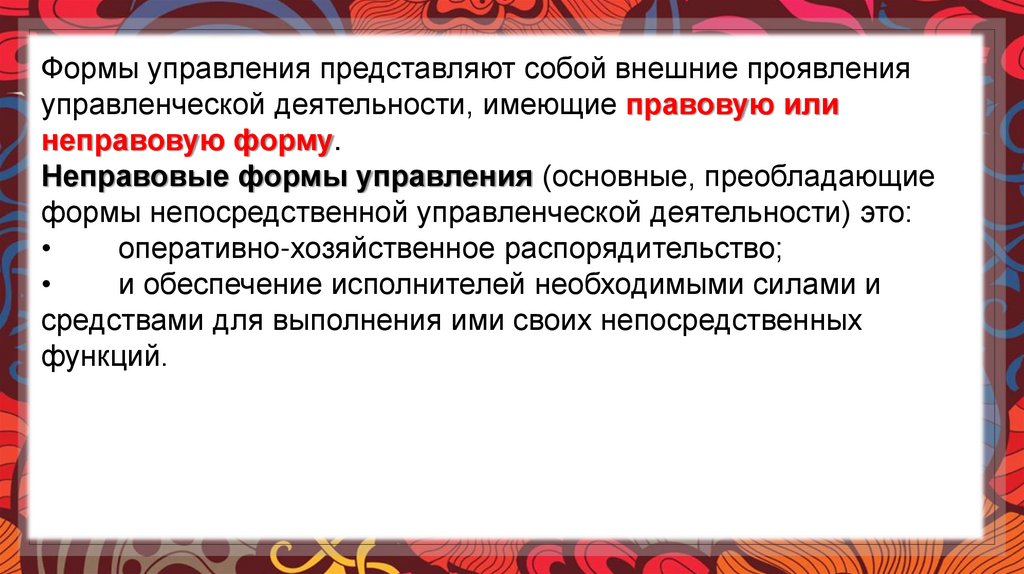 Неправовые формы управления (основные, преобладающие