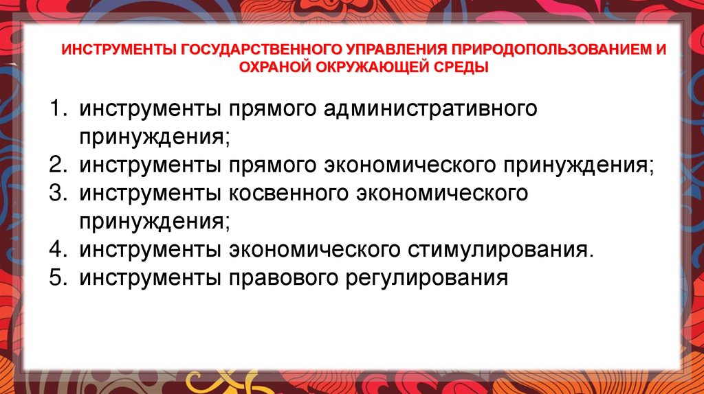 ИНСТРУМЕНТЫ ГОСУДАРСТВЕННОГО УПРАВЛЕНИЯ ПРИРОДОПОЛЬЗОВАНИЕМ ИОХРАНОЙ ОКРУЖАЮЩЕЙ СРЕДЫ