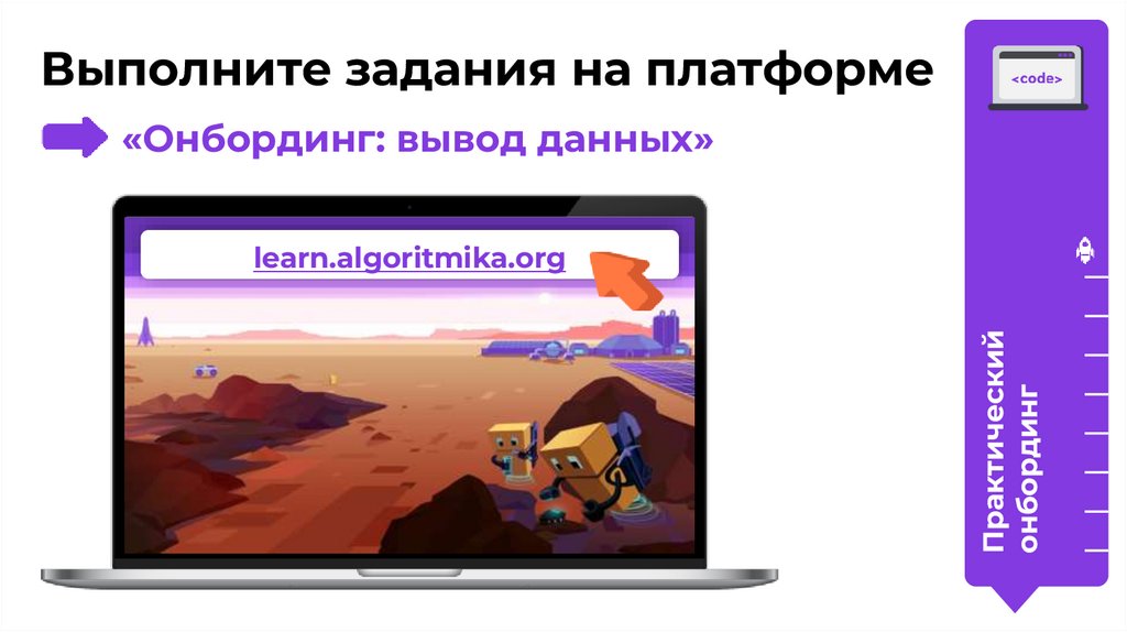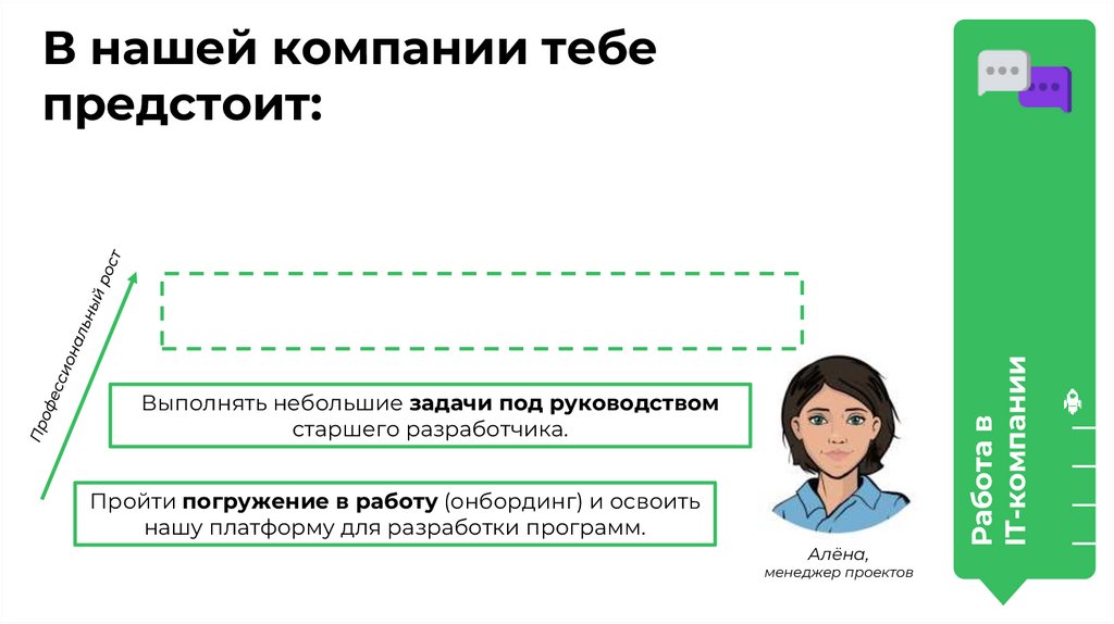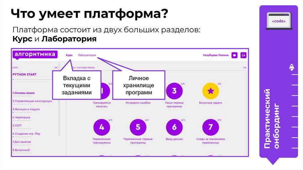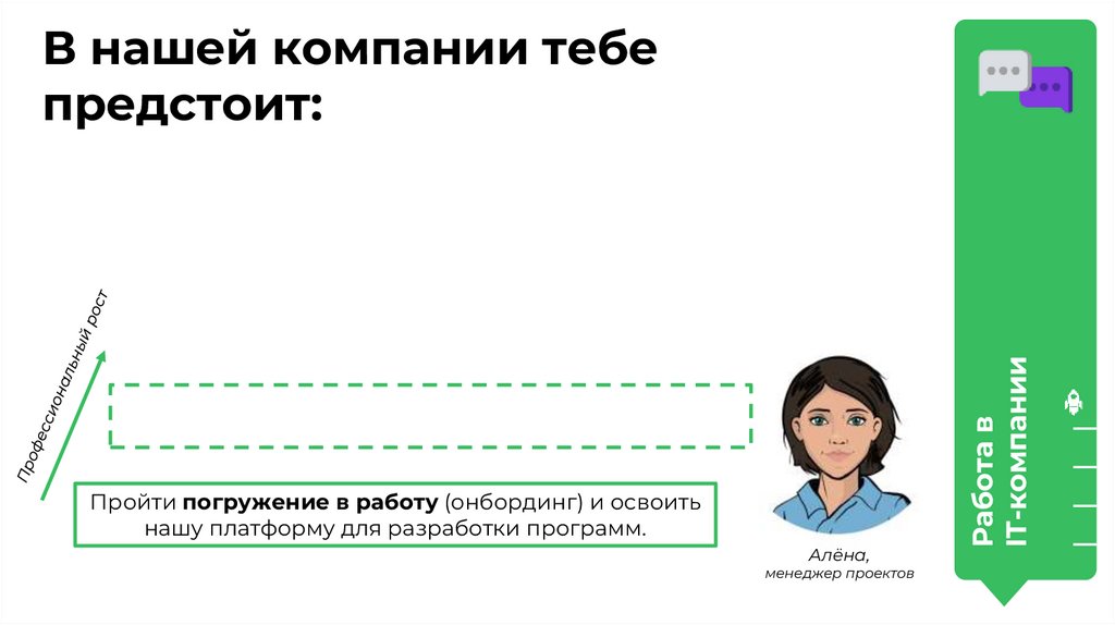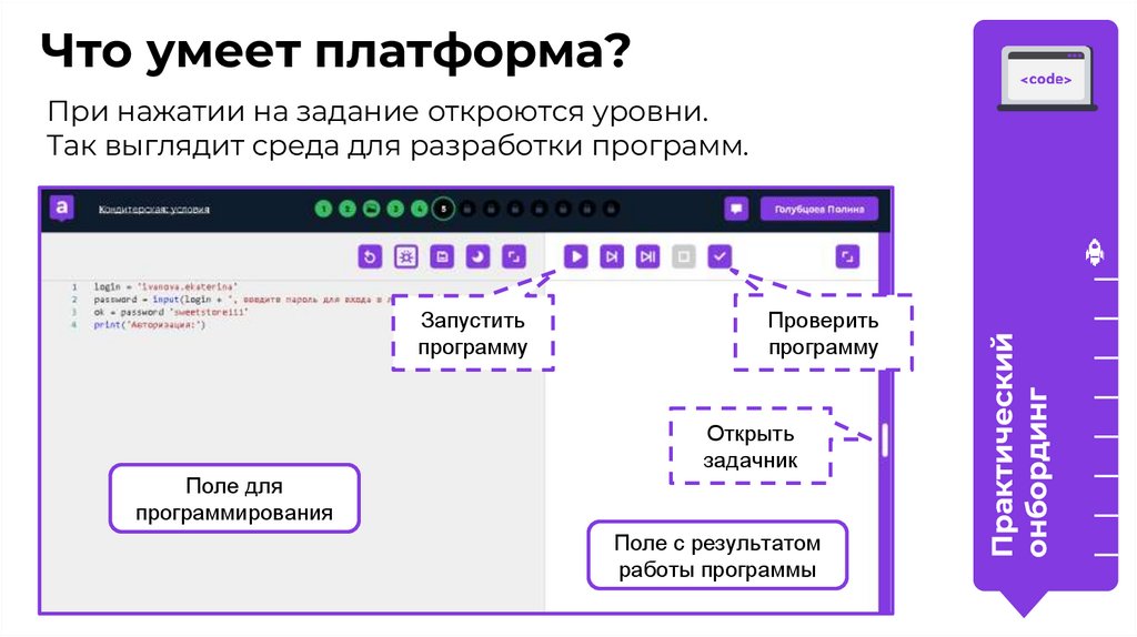 Пройти погружение в работу (онбординг) и освоитьнашу платформу для разработки программ.