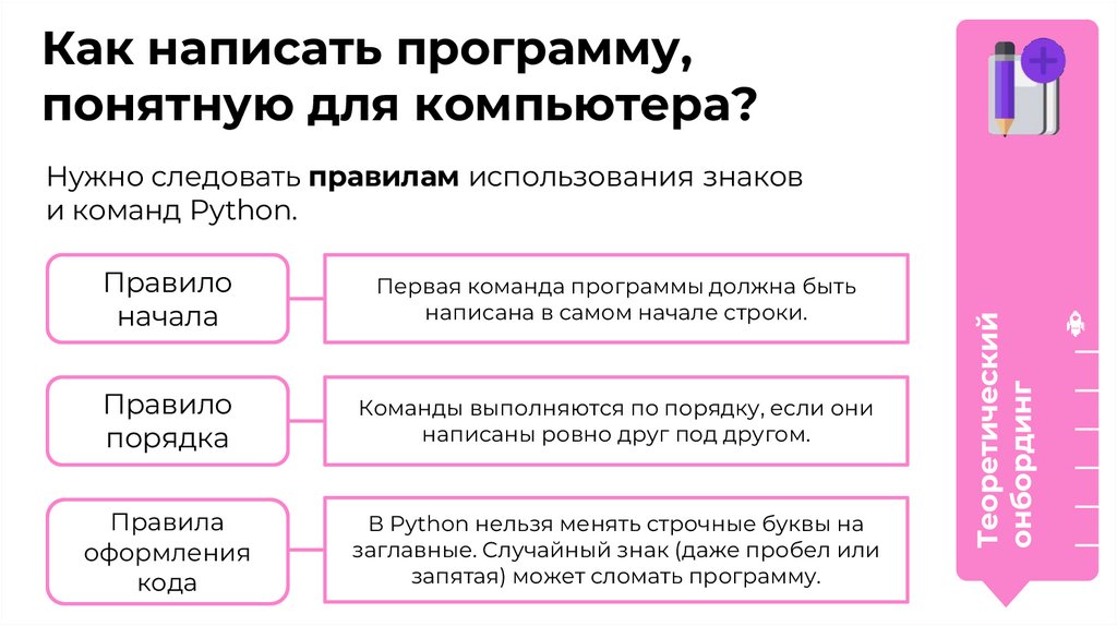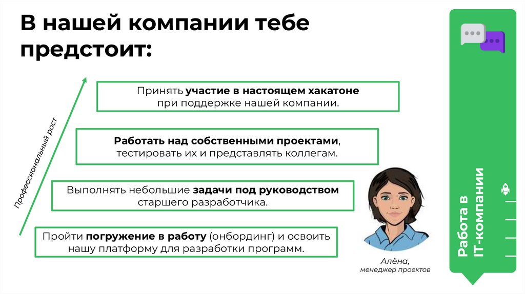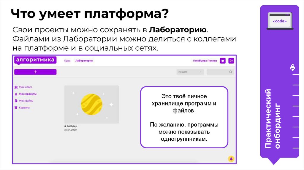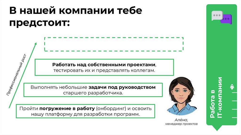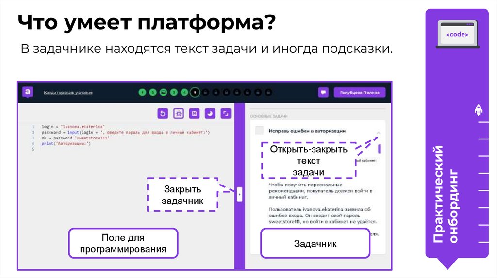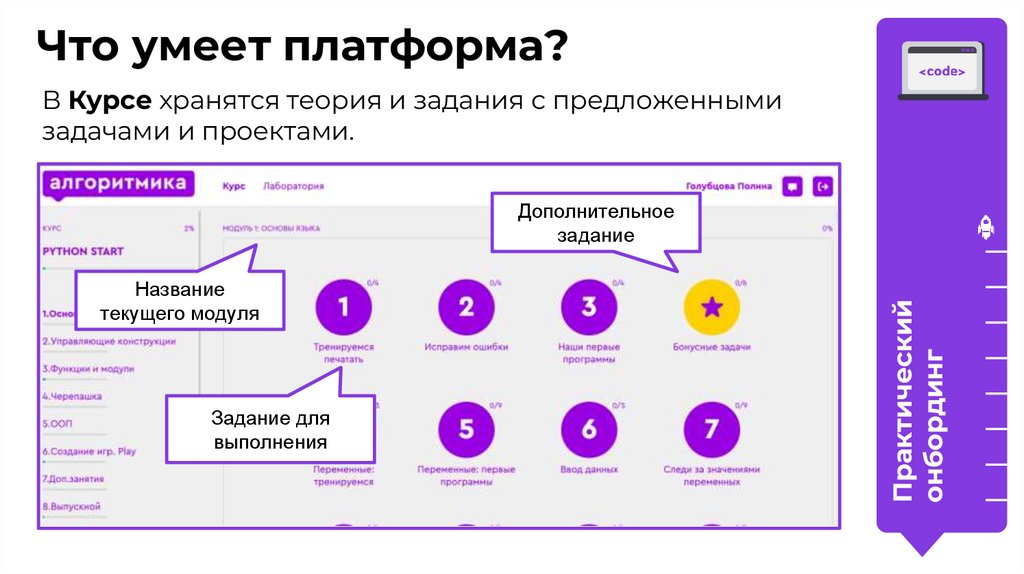 Пройти погружение в работу (онбординг) и освоитьнашу платформу для разработки программ.
