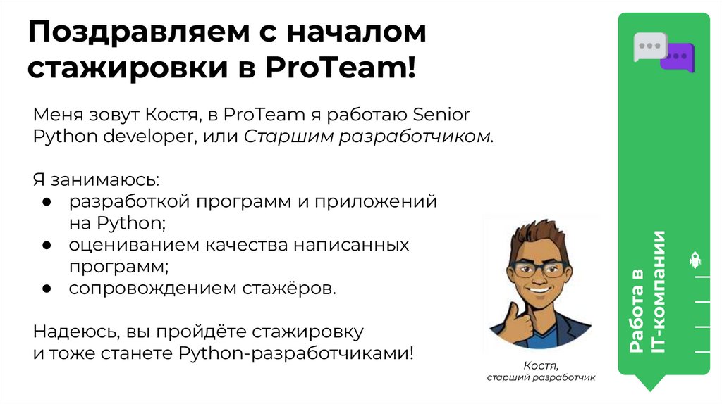 Выполнять небольшие задачи под руководствомстаршего разработчика.