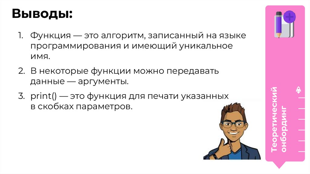 Выводы:1. Функция — это алгоритм, записанный на языке