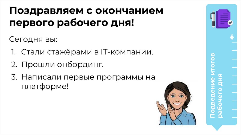 Цель рабочего дня —пройти онбординг для вступления в должность