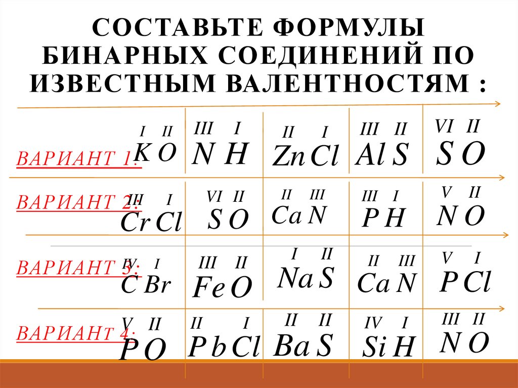 СОСТАВЬТЕ ФОРМУЛЫБИНАРНЫХ СОЕДИНЕНИЙ ПО