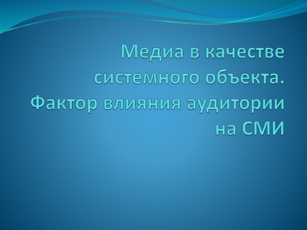 1. Медиа в качестве системного объекта. Фактор влияния аудитории на СМИ