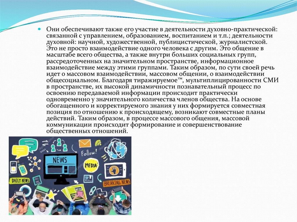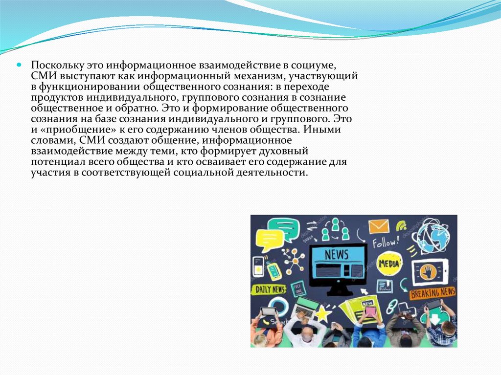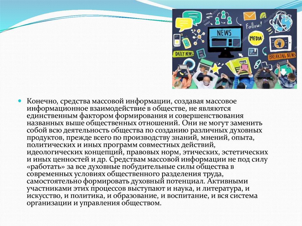Конечно, средства массовой информации, создавая массовоеинформационное взаимодействие в обществе, не являются
