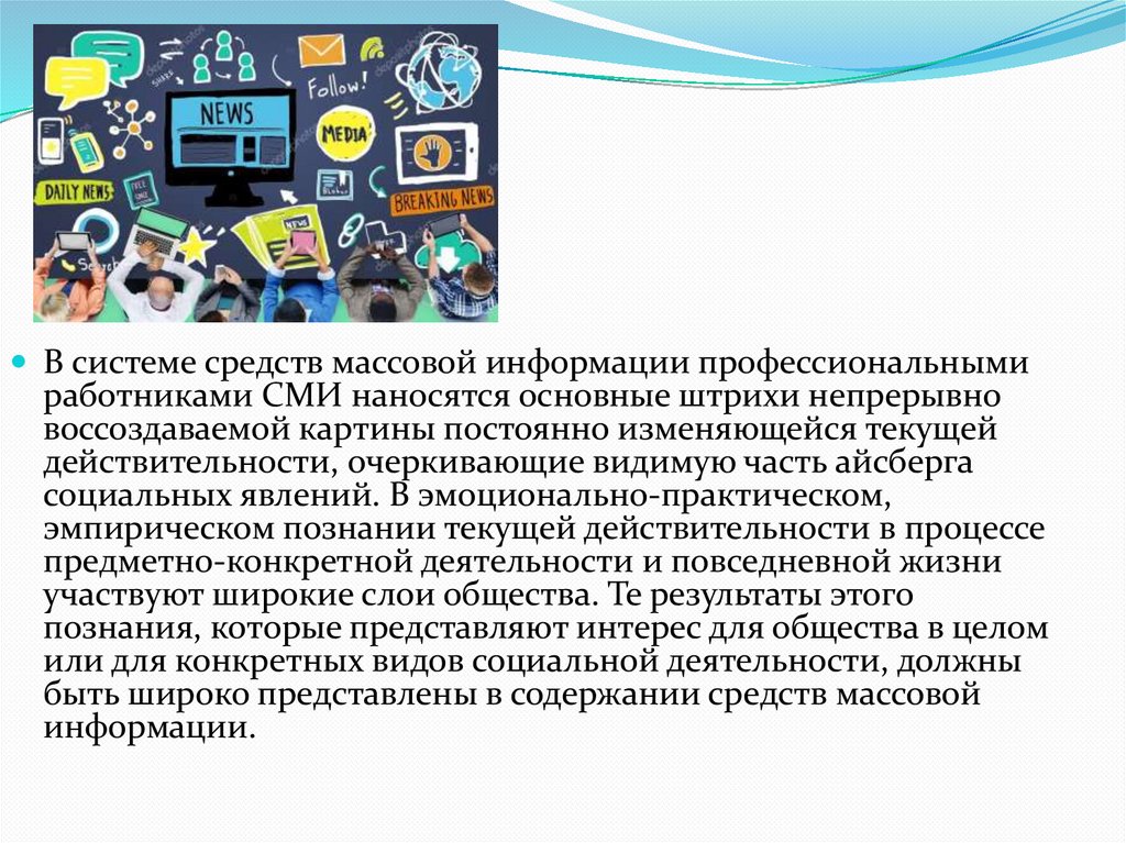 В системе средств массовой информации профессиональнымиработниками СМИ наносятся основные штрихи непрерывно