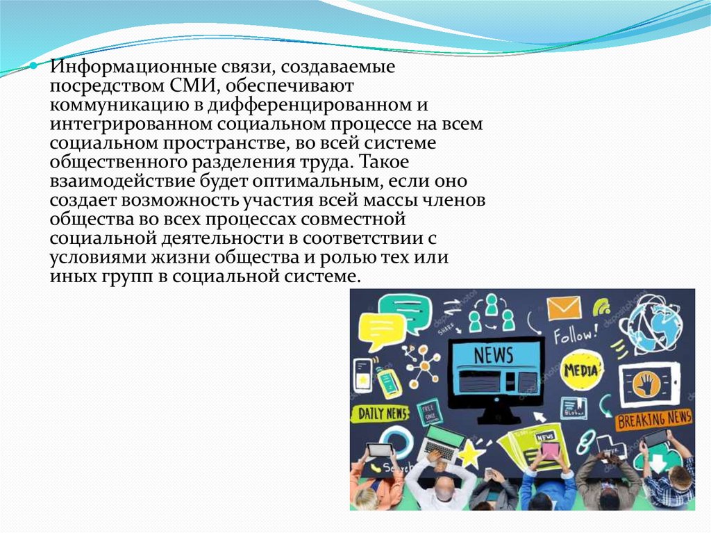 Информационные связи, создаваемыепосредством СМИ, обеспечивают