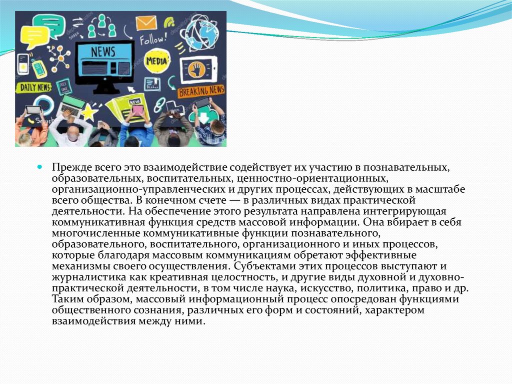 коммуникативная функция средств массовой информации. Она вбирает в себя