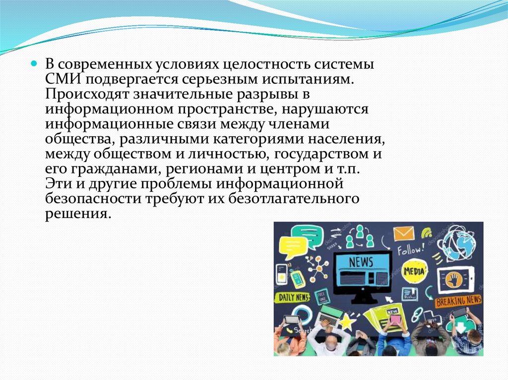В современных условиях целостность системыСМИ подвергается серьезным испытаниям.