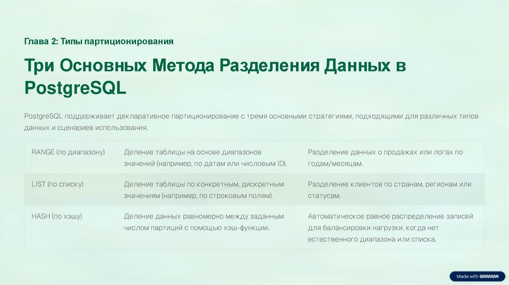 Глава 2: Типы партиционированияТри Основных Метода Разделения Данных в