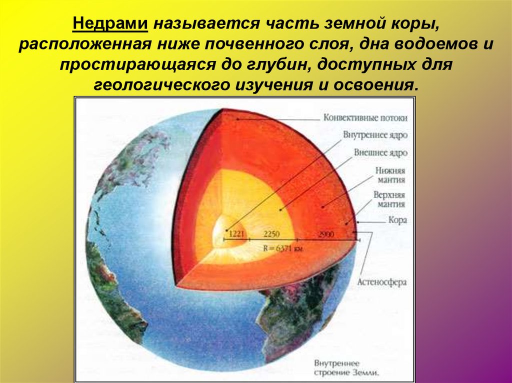 Недрами называется часть земной коры,расположенная ниже почвенного слоя, дна водоемов и